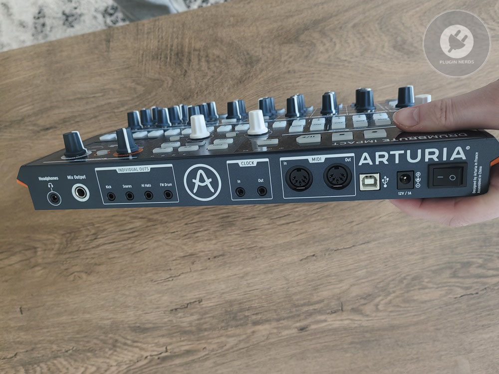 You get individual outputs for each drum sound and a main stereo output, which is great for mixing, even if most people just use the stereo out. MIDI in and out work well for syncing with other gear or using the DrumBrute as a MIDI sequencer. It also supports MIDI, USB, and analog clock sync, so you can connect it to almost anything.
